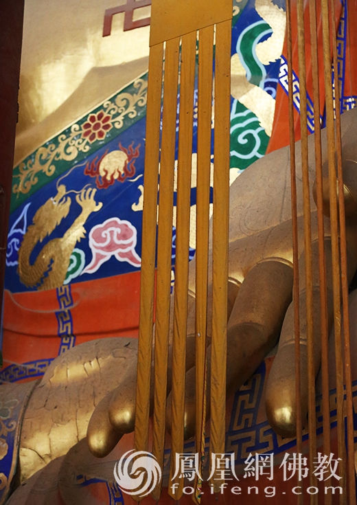 手、足、胸及面部皆用纯金箔贴面,更显金光熠熠,气度非凡,令人叹为观止。