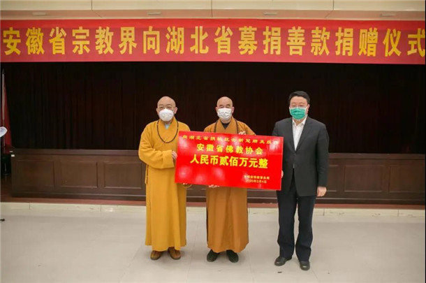 安徽省佛教协会向湖北省孝感市慈善总会捐款200万元