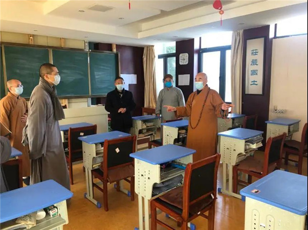 安徽省佛协执行会长慧庆法师前往九华山佛学院看望留校师生并检查学院疫情防控情况