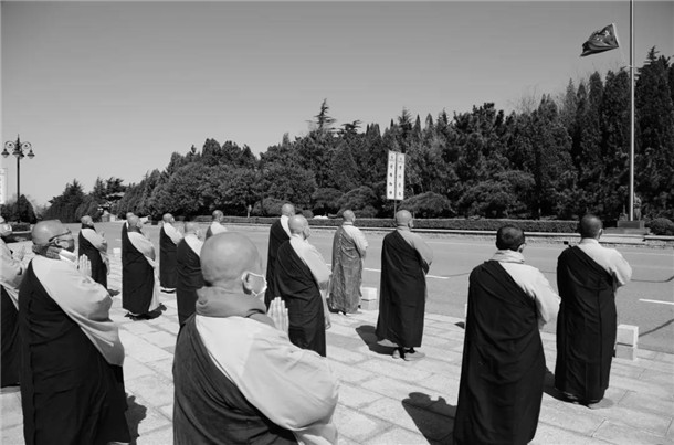 觉悟佛教网山东讯 2020年的春天注定不平凡,为表达全国人民对抗击新冠肺炎疫情斗争牺牲的烈士和逝世同胞的深切哀悼,4月4日上午南山禅寺积极响应国务院发布的公告,举行国旗下深痛默哀仪式。