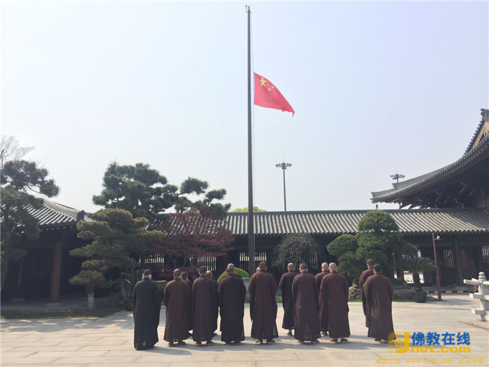 淞南寺降半旗向抗疫牺牲烈士和逝世同胞致哀