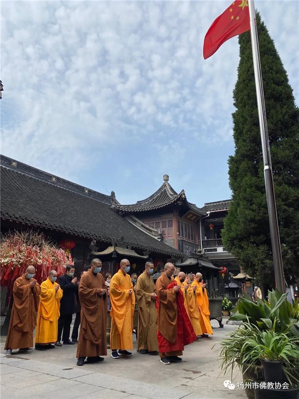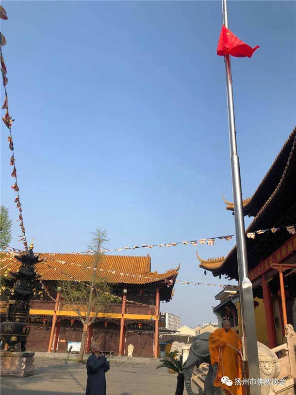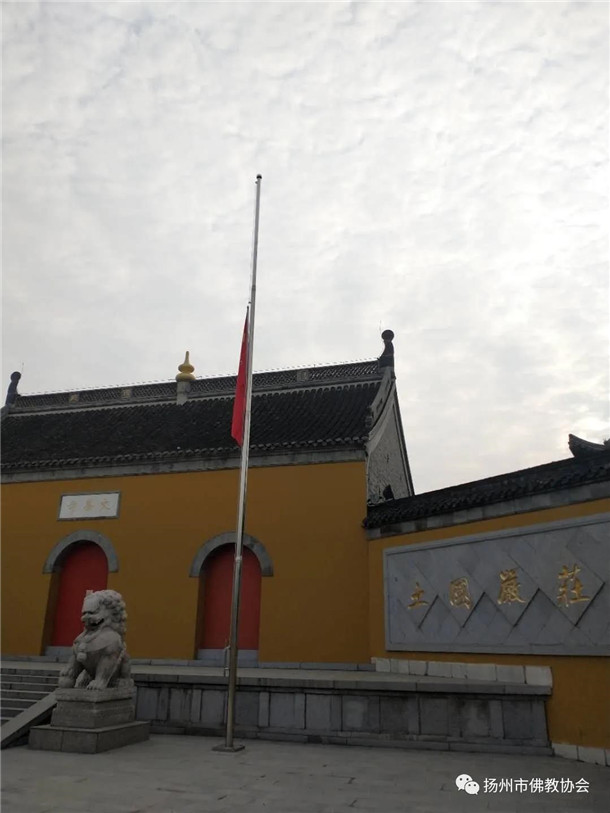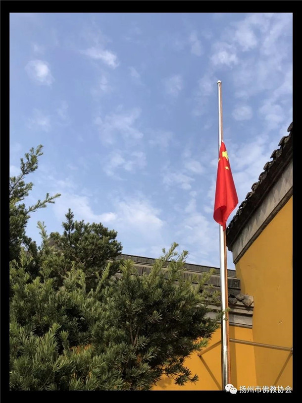 扬州市佛教界为抗击新冠肺炎疫情牺牲烈士和逝世同胞举行降半旗致哀悼念活动