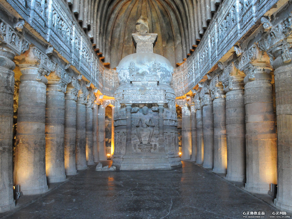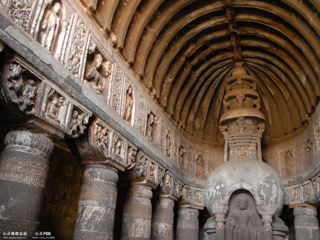 窟开凿于公元前2世纪阿育王时代,当时佛教被定为国教,虔诚的佛教徒们为敬奉佛祖、研读经书、修身养性,找到了这个丘陵起伏、景色秀丽的幽山深谷。一时间,这里僧侣云集、香火不断。之后的开凿工作持续了将近1000年。