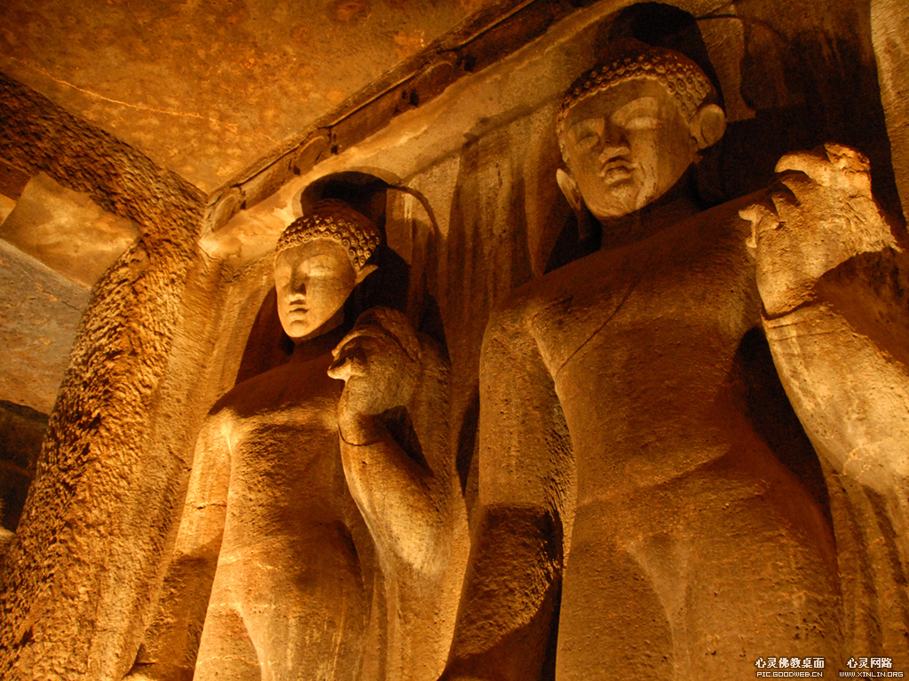 早期佛教学堂也就是思想探索,弘扬佛法,讲经布道的地方。石窟比较简朴沉稳, 一般只用象征手法来纪念佛陀, 不直接雕刻佛像,从莲花到菩提树,法轮到足印,无不表示对佛祖的深切怀念。现在看到的佛像多是后期添加的。