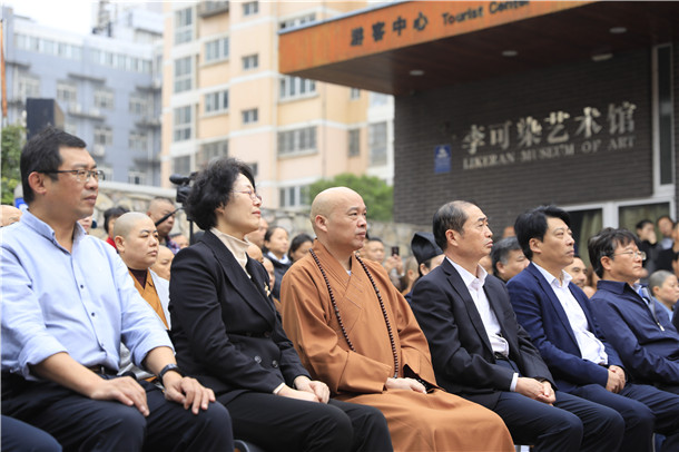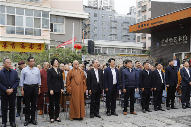 觉悟佛教网徐州讯 2019年10月14日上午9时30分,“庆祝新中国成立70周年.中国佛教徐州第二届书画作品展”开幕式,在李可染艺术馆隆重举行。本次书画展由徐州市佛教协会主办,共展出了来自中国佛教协会及山西、河北、安徽、浙江、新疆、山东、江苏、北京、重庆等省市佛教界书画功底深厚、才华横溢的大德高僧,以及在国内德艺双馨、享有盛誉的书画界名家作品108幅,包括山水、花鸟、人物、书法、版画等多种题材。