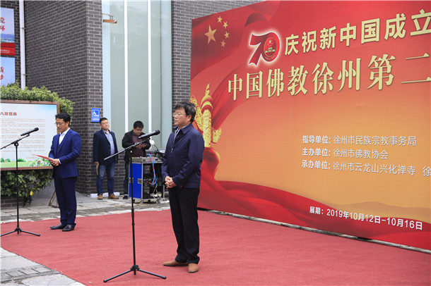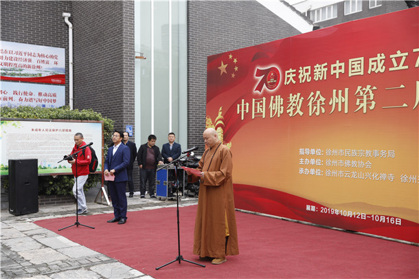 最后,徐州市人大陈新生主任宣布,庆祝新中国成立70周年中国佛教徐州第二届书画作品展隆重开幕!