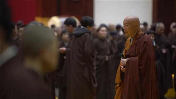 二〇一七年六月,邻寮果普老和尚示寂,师对老和尚言道:“果普师,你我同为浙江老乡,如今你先我西去,我随后就来,你我他日西方再见!”此为师首次语及往生之事宜。此后,师之体格每况愈下,常住多次请师教唱东林佛号,师虽感力不从心,但又以心念众生,故而于师古稀之年,大众仍能于法会中见师领众唱念之身影,其举止神态动静自如,威仪庄重。