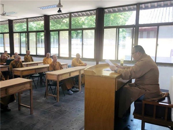 觉悟佛教网南京讯 抗击疫情不忘学习,为进一步推动全寺僧众全面正确理解运用和自觉遵守《江苏省宗教事务条例》,进一步提教职人员的思想觉悟,维护宗教场所清净庄严,5月16日上午,栖霞古寺组织全寺僧众学习条例讲座活动,深入了解条例章节内容,贯彻落实宗教团体、活动场所、教职人员、宗教活动、宗教院校、宗教财产等相关条例知识,让全寺僧众明确各项规定和责任。讲座由栖霞古寺监院净定法师主持。