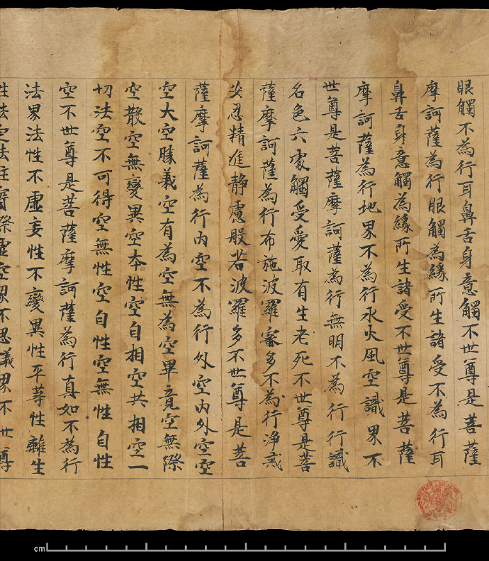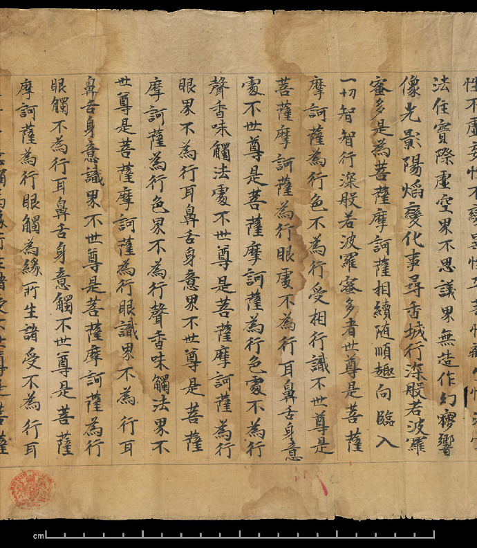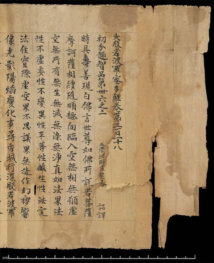 大般若波罗蜜多经卷第三百一十八:大英图书馆斯坦因敦煌遗书 水墨纸本 ink on paper 此卷为英国人斯坦因于百年前从中国敦煌莫高窟藏经洞收集。 第四张为全部经书