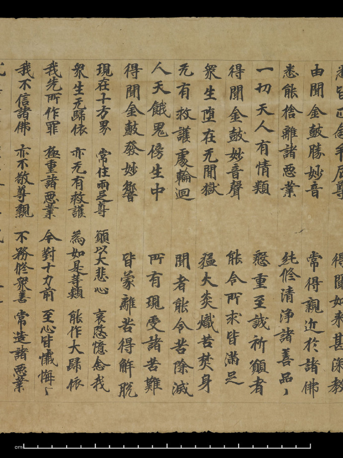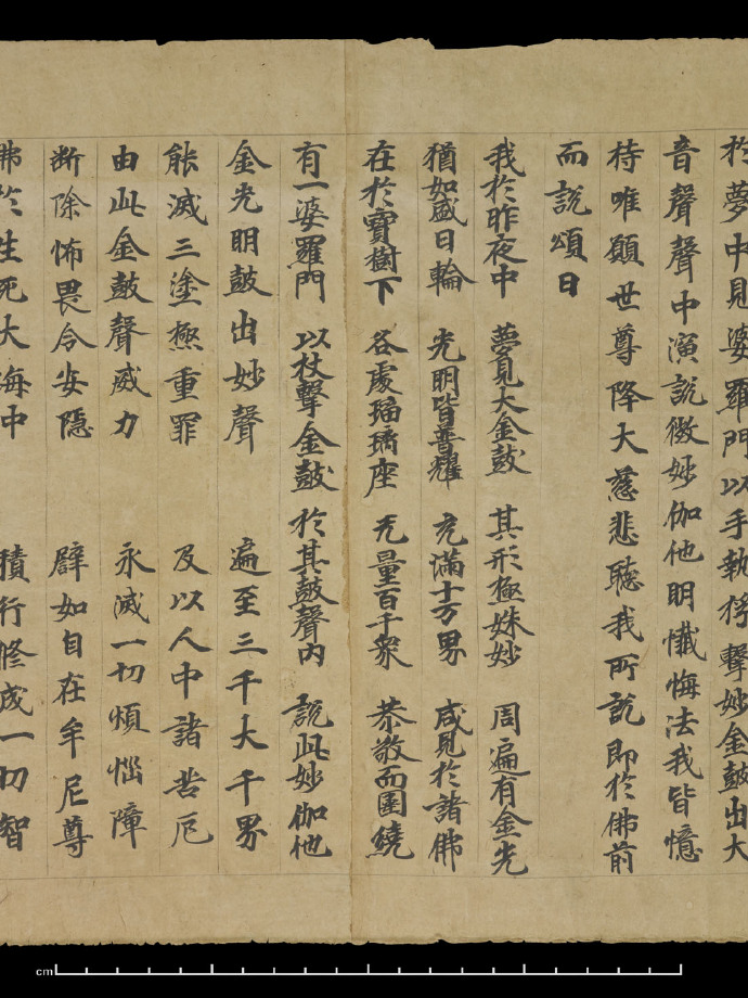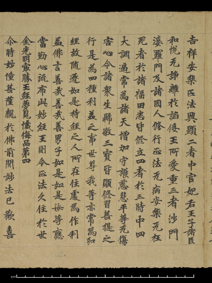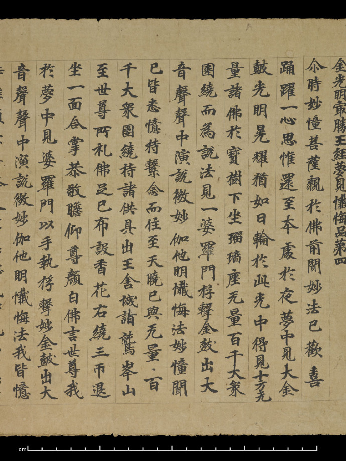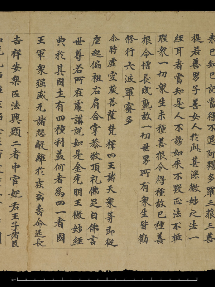 中国国家图书馆收藏敦煌遗书:金光明最勝王經卷第二,由于显示屏有限,每张图片都做了裁剪处理,便于观看阅读。 最后一张为《金光明最勝王經卷第二》全集图