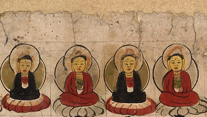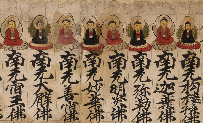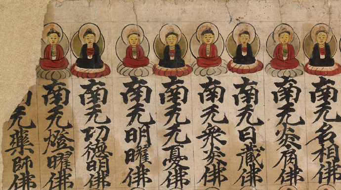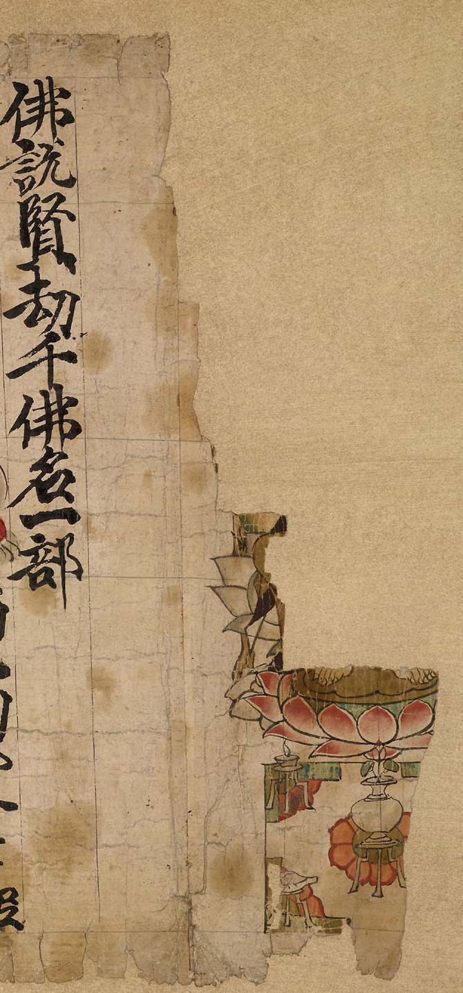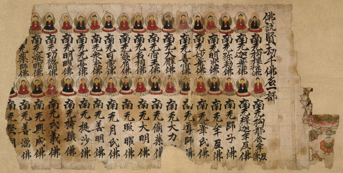 【弥足珍贵敦煌遗书】一名号一莲花一佛像:佛说现在贤劫千佛名经(局部):大英博物馆藏敦煌手稿