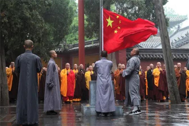 早上九点,少林寺山门缓缓打开,少林僧众在永信法师的带领下,排班而出,列队山门广场,举行庄严的升国旗仪式。