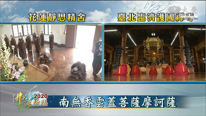 2020年佛诞节由慈济担任全球“线上浴佛祈福”转播,邀请十方大德线上祈福。因疫情,在台北临济护国禅寺、花莲静思精舍的户外浴佛台举办,由法师带领全球“线上祈福”,更配合政府防疫规定控制人数。在台北临济护国禅寺有30位法师,在花莲静思精舍则有62位法师带领16位清修士、32位包含慈济四大志业执行长、主管们虔诚礼敬。