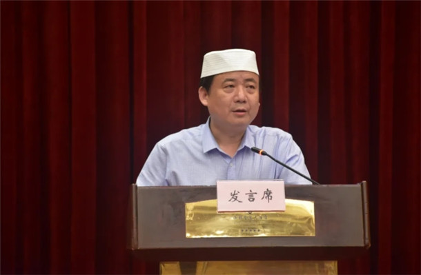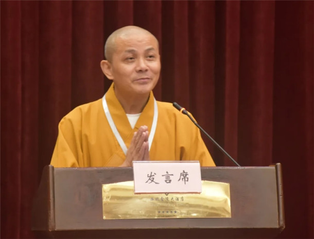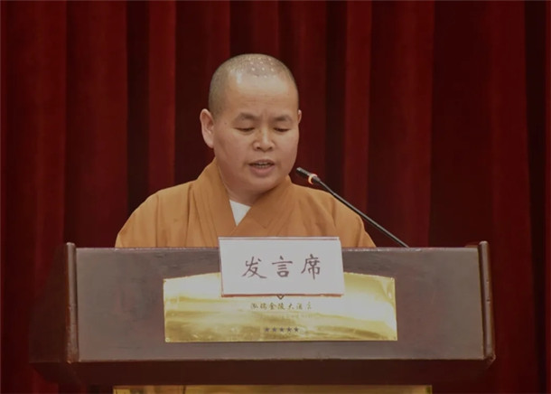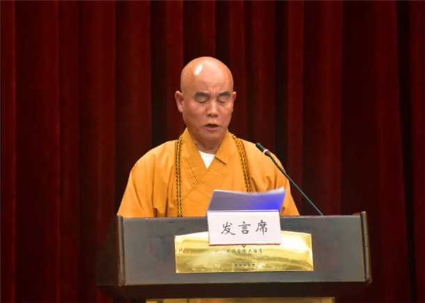 ▲安徽省佛教协会执行会长慧庆法师宣读省佛教协会贺电