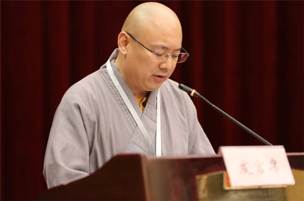 ▲圆藏法师受妙安会长委托作《合肥市佛教协会第三届理事会工作报告 (草案)》