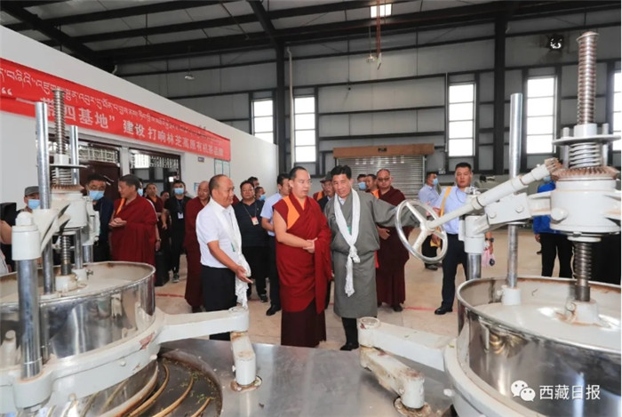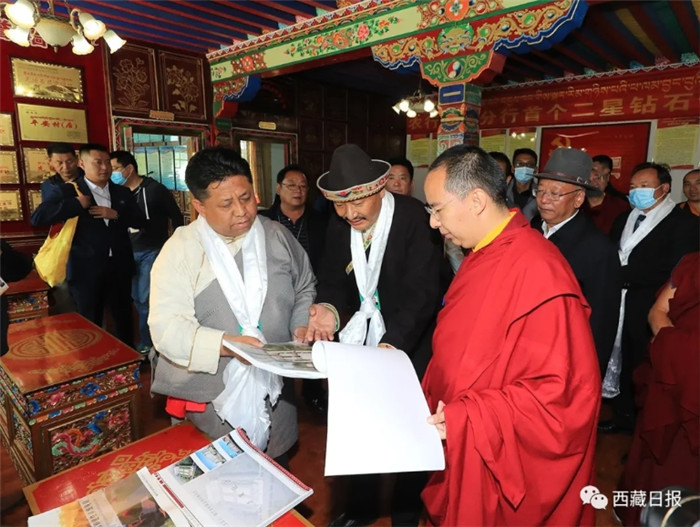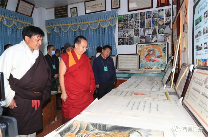 班禅参观米林县西嘎门巴村藏纸传承体验区。