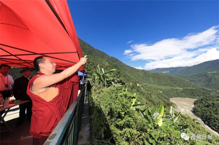 班禅在墨脱县雅鲁藏布江果果塘大拐弯调研旅游和生态保护情况。
