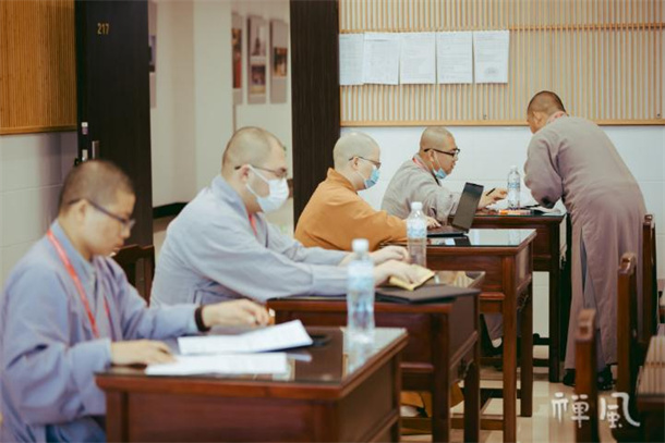 14日,为了提升参赛讲经法师的现场讲经水平,主办方还专门在赛前安排了全天的“讲经法师培训会”,将21名学员进行了分组,并且为每组安排了一位培训法师进行指导。培训现场上,各位讲经法师认真对待,仔细听取培训法师的建议和意见。培训法师根据本次讲经交流会规定的妙解、妙辞、妙机、摄众和威仪这五个方向的评分标准,对参赛讲经法师的演讲内容进行细节打磨;针对讲经法师需要注意的时间把控、仪表仪容、肢体语言交流等问题,也对其进行了耐心的讲解和提前演练。