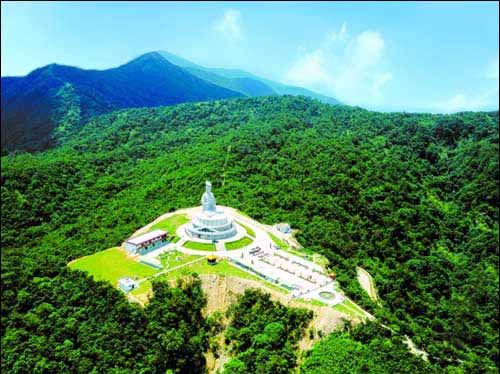 观音山是台北近效名山,山形犹如横卧的观音像,庄严地矗立在淡水河南岸八里地区,与北岸的淡水市镇、大屯火山群相望,为淡水河口的著名地标。