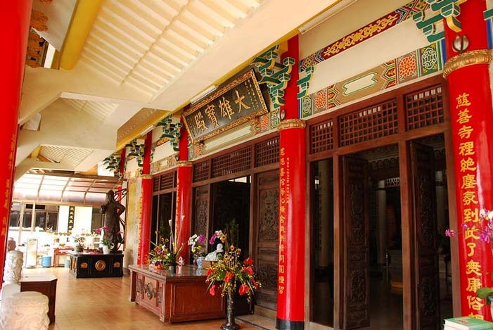 慈善寺采黄瓦、红柱、白墙栏的建筑色彩。走进三开间山门後,右方是2层楼.单殿双护龙的大雄宝殿,黄瓦屋脊上有铜饰“法轮常转”,拾阶而上,殿前有韦驮、伽蓝护法立於两旁,大殿供奉华严三圣。右护龙为地藏殿,左护龙为观音殿。寺院左方另有2层建筑,2楼为弥勒殿,1楼作为寺务处。中庭後有1楼高5层之华藏塔,塔右建有“律航纪念堂”。塔前左方庭院建有怀思碑亭,亭中安置振光法师铜像,栩栩如生。