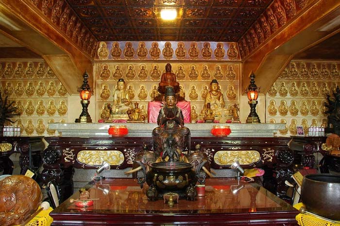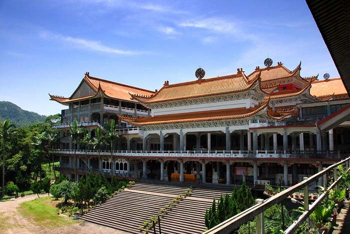 台北县双溪乡—一个群山环绕、云天辽阔的地方;这里雨水充沛,涧流潺潺,树木苍郁,万物展现生机。在这个彷如人间胜境的地方,有一座老实修行的道场,那就是—佛顶山大观寺。位于双溪乡的大观寺,距离双溪火车站只有五分钟车程,不论是清晨的云雾缥渺,或者是黎明的日出美景,在在有著「丛林道场”的风范。置身其中,著实令人感到“溪声尽是广长舌,山色无非清净身”、“郁郁黄花无非般若,青青翠竹总是法身”,就连阵阵飘拂的轻风,亦沁人心髓,时时激发著行者—提起正念。