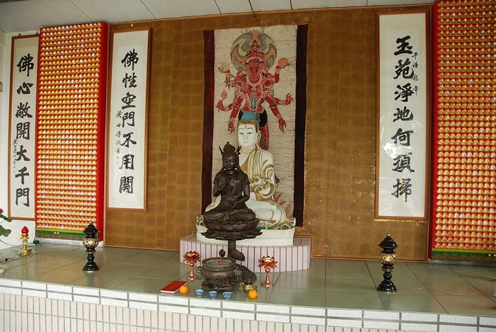 玉佛寺位于大坑风景区观音山顶,虽地处山巅,建地不大,但是麻雀虽小五脏俱全,有观音殿、地藏殿、药师殿、讲堂等..一应俱全,也有阿弥陀佛、地藏菩萨、观音菩萨等巨型塑像,立于山顶,视野极佳,可远眺台中市及太平市区,非常适宜亲子周休假期来此登山礼佛。
