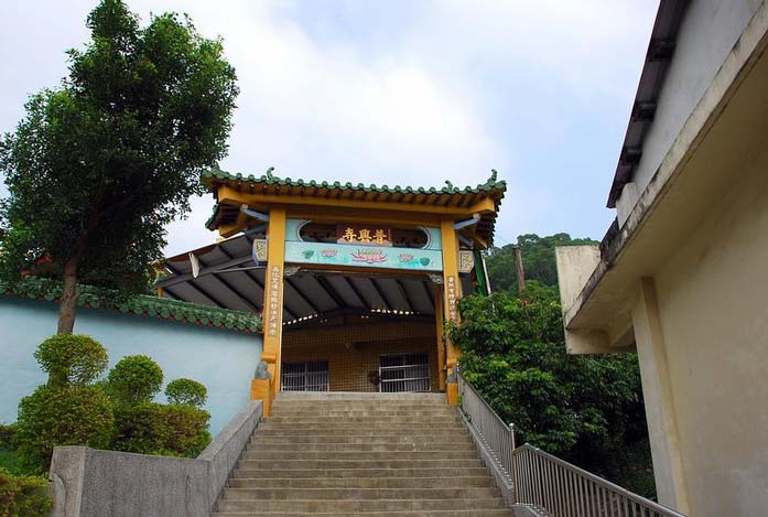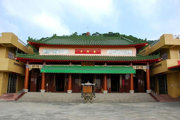 普兴寺位于田中镇复兴里,始建于1928年。由陈国兴、陈甘露等人发起创建,初称修善堂,1943年改称普兴寺。普兴寺座落于赞天宫旁,同样系由民初的竹屋、而后的木造庙宇改建成现今形貌,寺中供奉观音佛祖。寺前是圣敬园,有公共游憩设,登山民众休息。普兴寺亦有举办法会,但次数很少,主要是提供自身常住人众清净为要务。