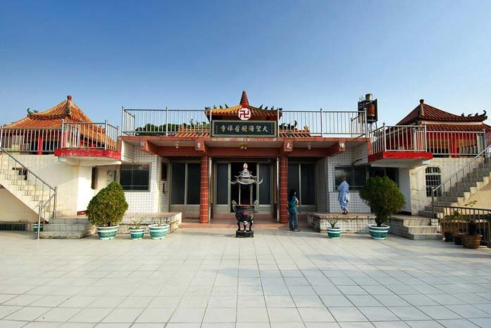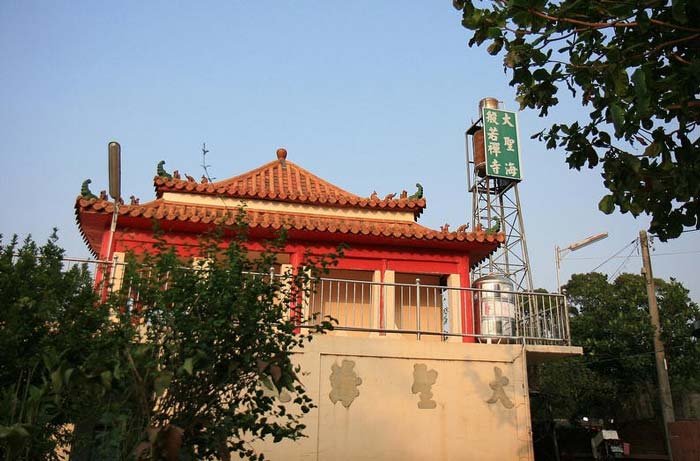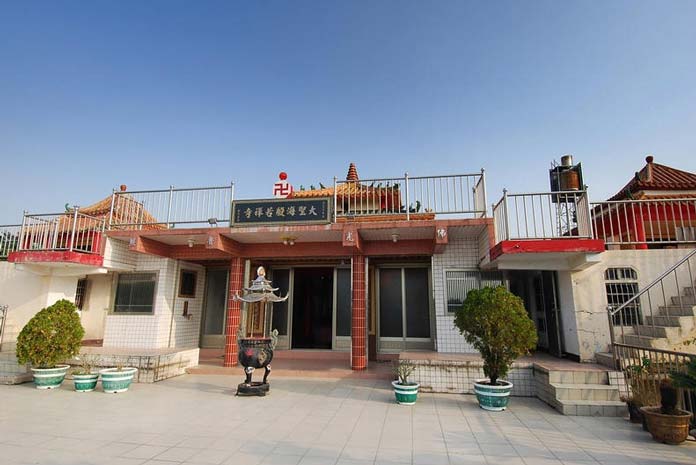 “大圣海般若禅寺”系民国六十二年,麻豆人“释深乙法师”所创建,当年深乙法师翻山越岭寻觅潜修之地,最后在此埤畔落脚,建造精舍修身养性;后传“怀龙法师”继续在此宏法,现今寺貌即由其主持重修,坐东朝西,面临宽阔水库,居高临下,风景优美。