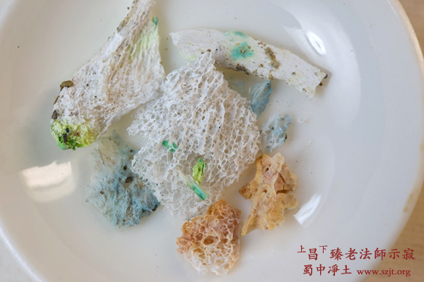 老法师示寂后,我们遵循其生前遗愿,丧事一切从简办理。组织七日念佛助念,及装龛、荼毗和追思法会,一切顺利完成,功德圆满。装龛时,老法师银髯轻拂,面色红润,神态安祥,如入禅定;结跏趺坐,全身柔软状如婴儿之体。元月2日荼毗后,弟子们从骨灰中检到舍利,大小不等,数以千计。