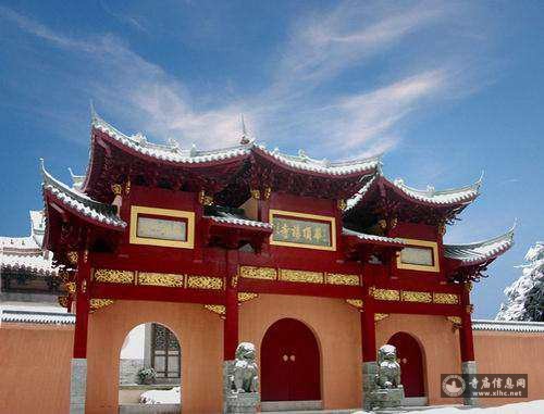 华顶讲寺位于浙江省天台山风景区的华顶峰,距天台县城25公里,海拔1098米,李白形容其巍峨,有“天台四万八千丈”之句。每当晴日,立于华顶望 海石上。四顾“峰峦重叠,山有八重”。可以东眺溟渤,北望钱塘,西望括苍,南瞻雁荡。八重峰峦,如朵朵莲花,尽来眼底。徐霞客曾在《游天台山记》中说: “至太白(堂),循路登绝顶,荒草靡靡,山高风冽。草上结霜高寸许;而四山回映,,琪花玉树,玲珑弥望。岭南山花盛开。顶上反不吐色,盖高寒所勒乎。”华 顶上常有云雾升起,并化现各种物相,或滚滚而来,或缥渺而去,这就是令者称奇的“华顶归云”。李白曾在《天台晓望》诗中写下“天如邻四明,华顶高白越。云 垂大鹏翻,波动飞鰲没”的名句。顶巅有拜经台,传说为天台宗创始人智者大师遥拜《楞岩经》之地,由是著名,惜已毁于“文革”。