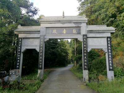 现今,观音寺建有三圣殿、观音殿、地藏殿、斋堂、寮房和牌楼,山门外的牌楼上由湖南省岳阳市原政协主席、书法家张治雄先生亲笔书写“山色不殊,此间即是弥陀境;潮音何壮,天际时来补怛云。”