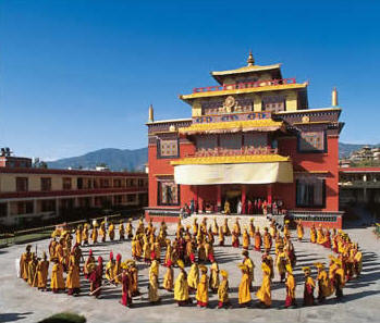 理想上,一座寺院应该有一个主要的庙宇、僧众、佛学院和闭关中心;这四者之间的关系密不可分。在闭关中心,学生可以把自己所学习到佛教哲理和仪轨应用在实修之中。