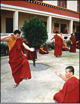 目前有三百多名来自喜玛拉雅山区的僧侣居住在雪谦寺中,并在此学习。除了学习佛教哲学之外,他们也接受音乐、舞蹈和绘画方面的教育。在雪谦寺附设的小学中,有七十名从五岁到十四岁的孩童,接受结合了传统科目和现代课程的完整教育。他们居住在寺院之中,受到校长的关爱与照料。有一些在幼年时期即在寺院接受训练的僧侣,如今成为这群学童的老师,把他们学习的成传递给更年轻的学子。一旦他们从小学毕业,便开始继续为期两年的课程;这个课程以仪典艺术为重点,其中包括背诵仪轨、学习吹奏法会的乐器,以及诵经和宗教舞蹈的训练。