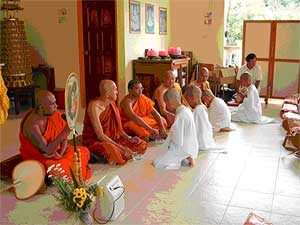 佛法的修习以持戒为主,兼教止观法门如佛随念,安般念或适当的四十业处其中一种给予修学者,观禅以七清淨及十六观智为主。