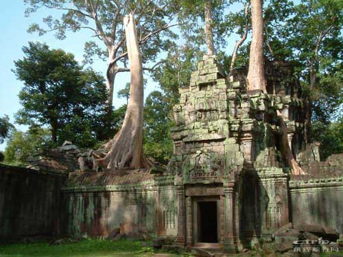 塔布茏寺(Ta Prohm)位于吴哥窟东面,是大型的石头堆砌而成的佛教寺庙,吴哥遗址中的主要建筑之一。建于12世纪末,高棉国王阇耶跋摩七世(Jayavarman VII)为了祭祀他的母亲而修造,也叫“母庙”。那时寺中有3000僧侣,其中有18个高僧。最令人难忘的是考古学家有意保留了茂盛的树林,让人们知道它是如何从丛林发掘出来的。