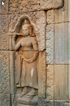 诺哥庙(Wat Nokor)是11世纪建造的大乘佛龛,其主要材料是砂岩和红土,位于一座仍有香火并有些世俗气的小乘佛寺中心。这里离城约1公里,就在去金边的路边,寺庙周围笼罩着一种安宁祥和的气氛。同样宁静的去处是骑自行车或步行去附近乡间的Koh Paen岛,旱季时有一座精致的竹桥与陆地相连——这本身就堪称一景。