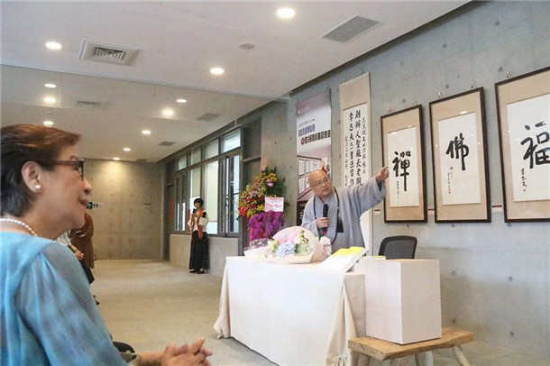 法鼓文理学院校长惠敏法师表示,校内布置的98幅李教授书法作品,有反璞归真的意境,而李教授以90多岁的年纪,仍能维持健康、终身学习,并保有回馈社会的热情,更是师生们追随学习的榜样。退居方丈果东法师也代表僧团转达对于李教授以书法、论著,弘化佛法、散发生命光彩的祝福。