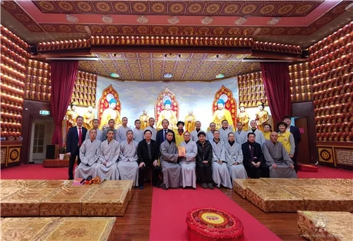佛光山海外巡监院院长、国际佛光会欧洲区副秘书长满谦法师(中)与法华禅寺妙达法师...