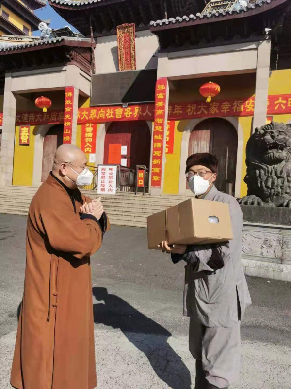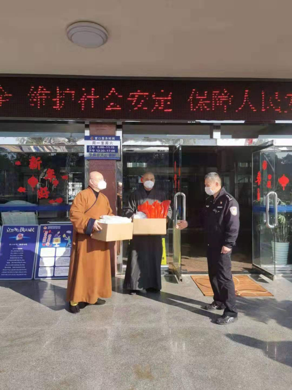“本寺一直关注疫情情况,得知目前社区口罩等防护物资短缺,此次尽自己的一份力量,捐赠给奋战在一线的社区工作人员,希望疫情尽早结束。”三圣禅寺于1月31日向市佛协(统筹交给省佛协)捐赠1万元爱心善款,免费赠送给当地镇政府机关、公安部门、医疗机构、周边寺院、社区工作者、环卫工人等一线工作人员爱心口罩、防护服等防护物资。给一线工作人员提供了安全保障,更温暖了工作人员的心。
