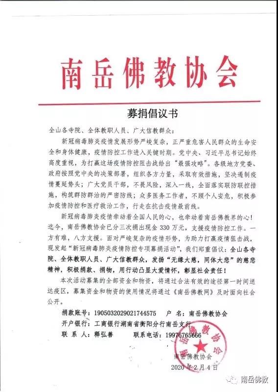 附:南岳佛教协会募捐倡议书